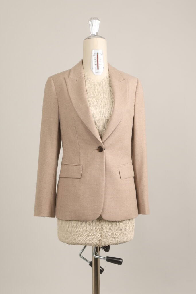 這系列會依照每位客人的身形進行 MTM 訂製,布料主要分為兩種等級:「經典訂製」採用 50%~70% 羊毛混紡材質,而「高級訂製」則使用 100% 羊毛或亞麻布料。穿起來不僅貼身合版,舒適度也非常出色,質感與市面上的成衣女裝完全不同,穿上身就能立刻感受到差異!
